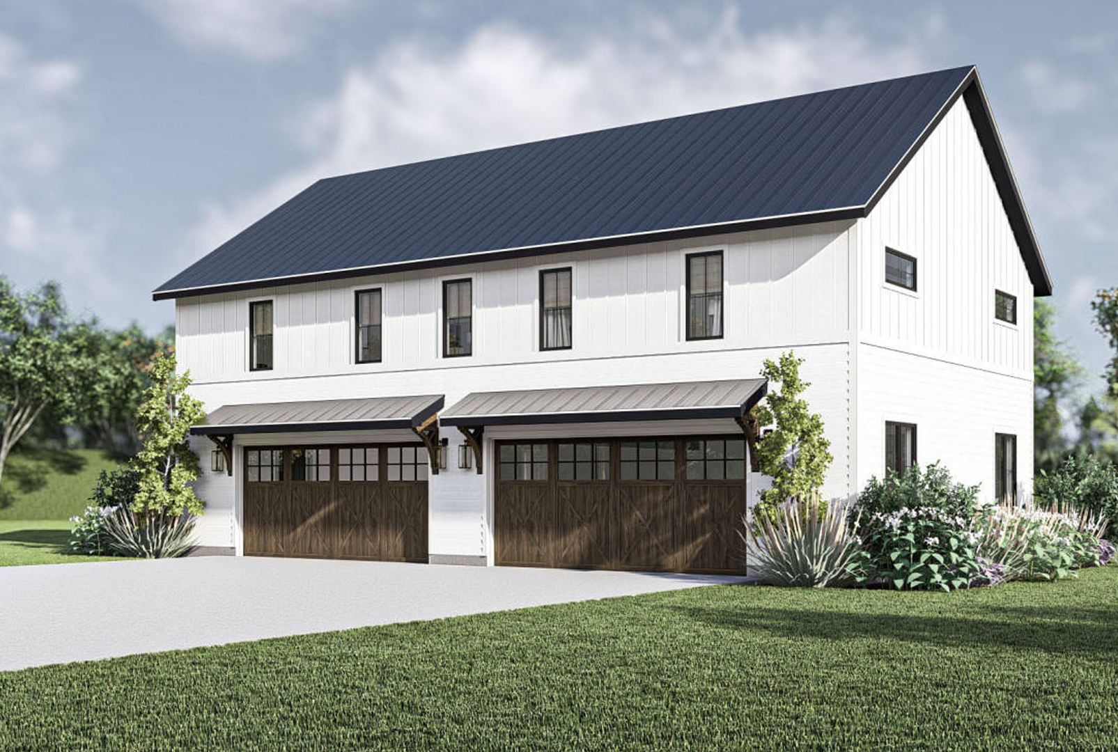 This modern farmhouse plan features 2,085 square feet with 3 bedrooms, 2.5 bathrooms, and a 2-car garage.
